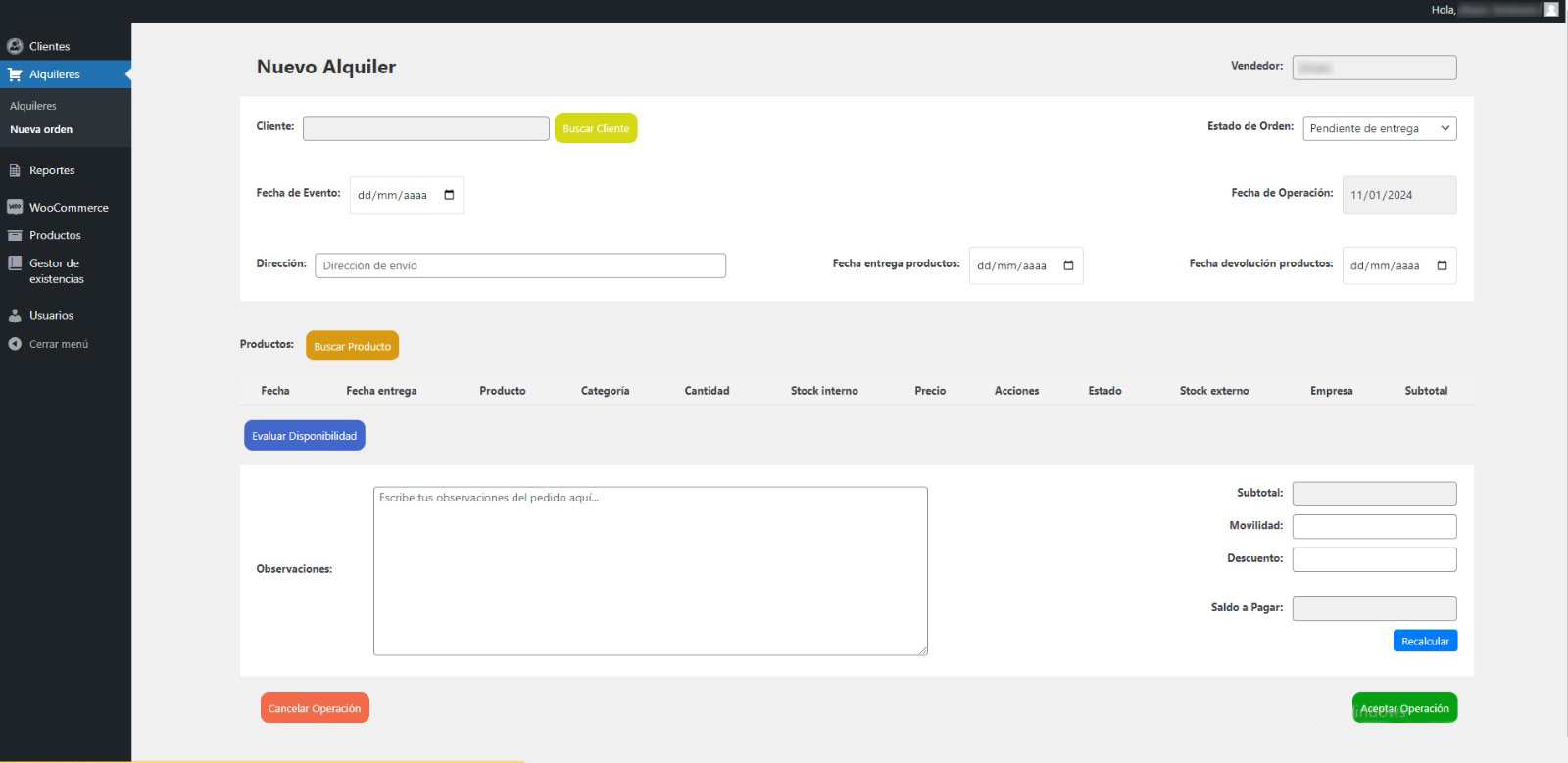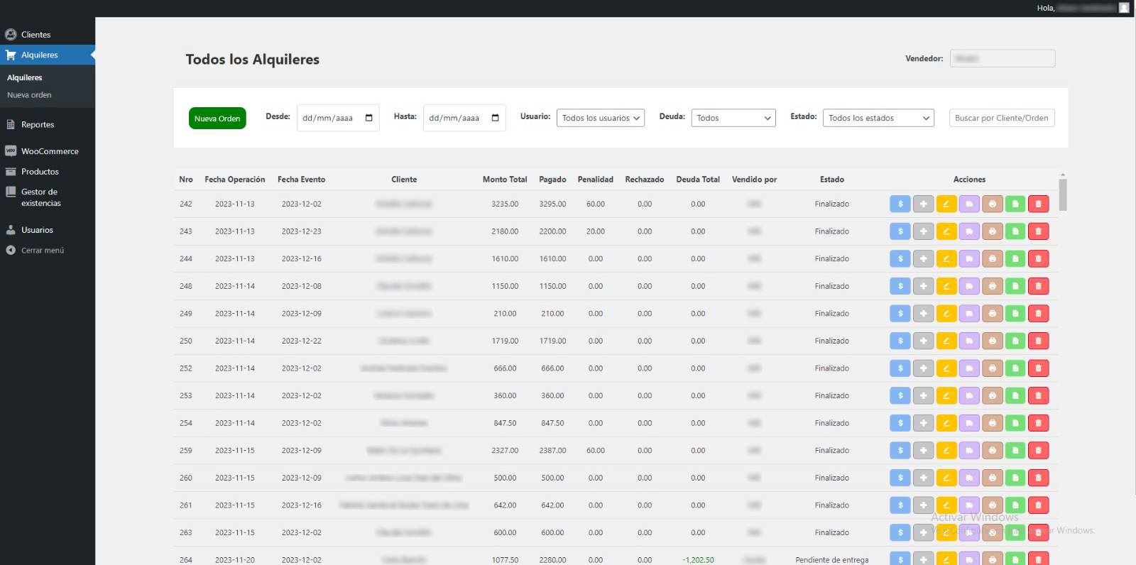 Se desarrolló un sistema con diferentes funcionalidades para gestionar las operaciones del negocio, el cual consiste en el alquiler de artículos de menaje, el sistema permite, registrar productos, generar órdenes de alquiler, registrar pagos, generar reportes de ventas, registrar clientes, usuarios, etc. El sistema facilita la gestión del servicio prestado y es multiusuario.