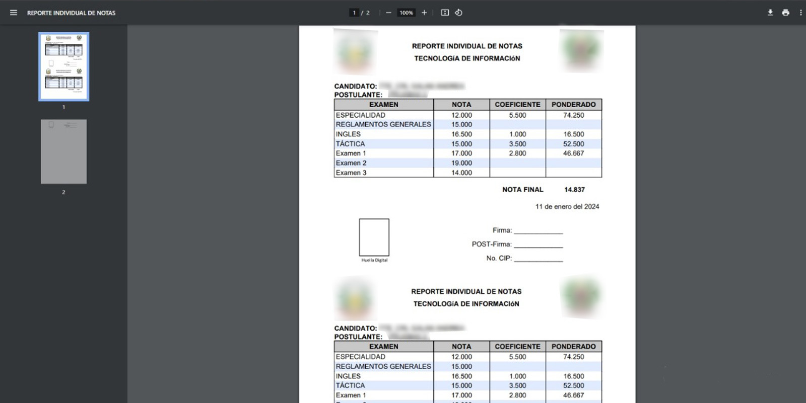 Reporte de notas